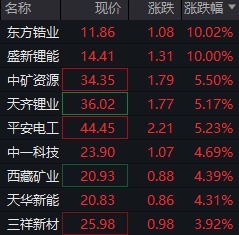 A股开盘后,煤炭、有色、钢铁板块应声而起,资本对周期板块的热情酝酿。云煤能源强势封板,陕西黑猫涨超5%;东方锆业、盛新锂能涨停,中矿资源、天齐锂业涨超5%;钢铁板块,柳钢股份涨超4%,包钢股份、西宁特钢涨超2%。